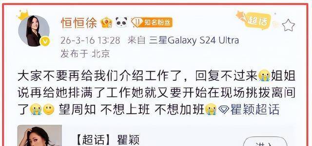 她的经纪人甚至直接发文:“大家不要再给我们介绍工作了。”