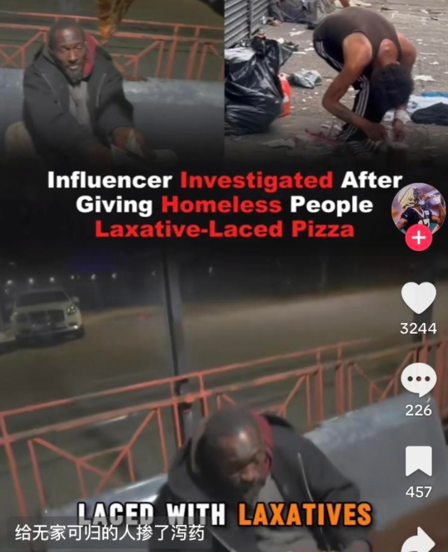 网红给流浪汉送食物,却在里面偷下泻药,病倒一片后引起警方介入,近日,一起“假善意、真伤害”的事件引发广泛争议,美国一名网红艾伦,以“帮助流浪汉”为内容拍摄视频,却在分发的披萨中掺入泻药,导致多名流浪者出现严重腹泻症状,目前已引起警方介入调查。这一行为不仅突破了道德底线,更可能触及法律红线。